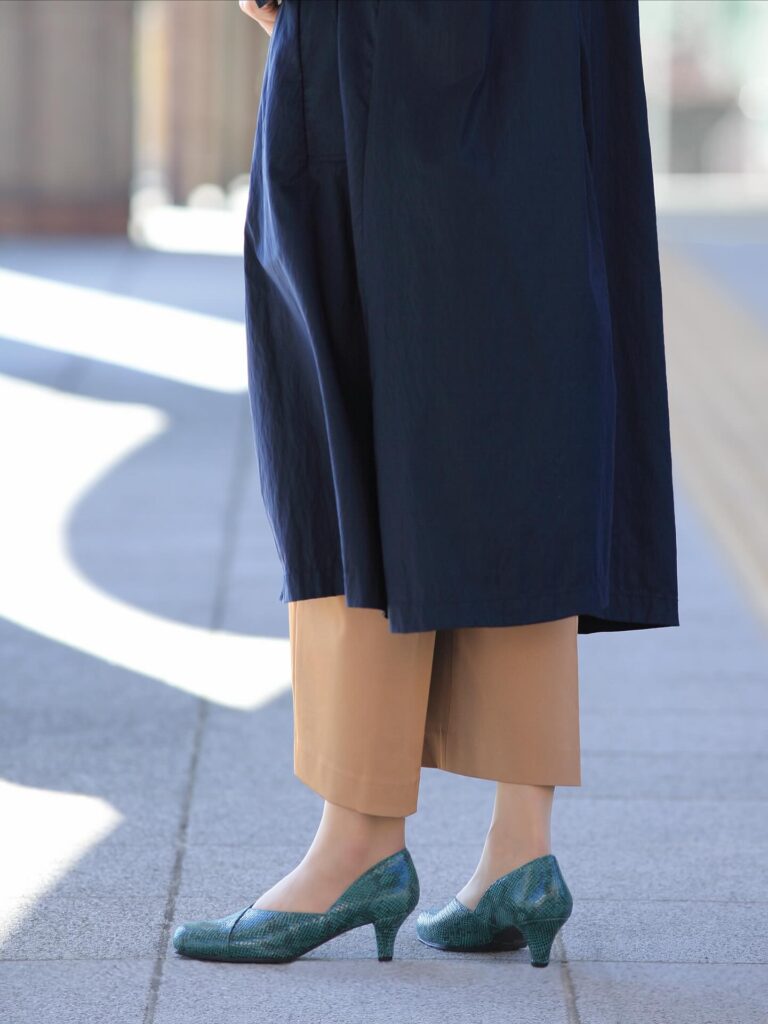 深みのあるグリーンが、歩くたびに光を受けて表情を変える。